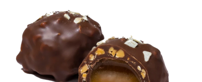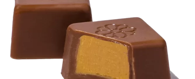 Milk chocolate with hazelnut ganache and caramel