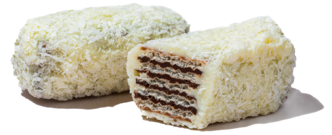 White chocolate with wafer, hazelnut cream and coconut flakes