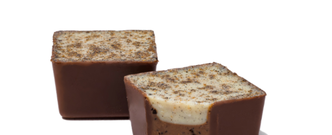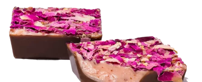Milk chocolate with rose water, cream and dried flower pieces